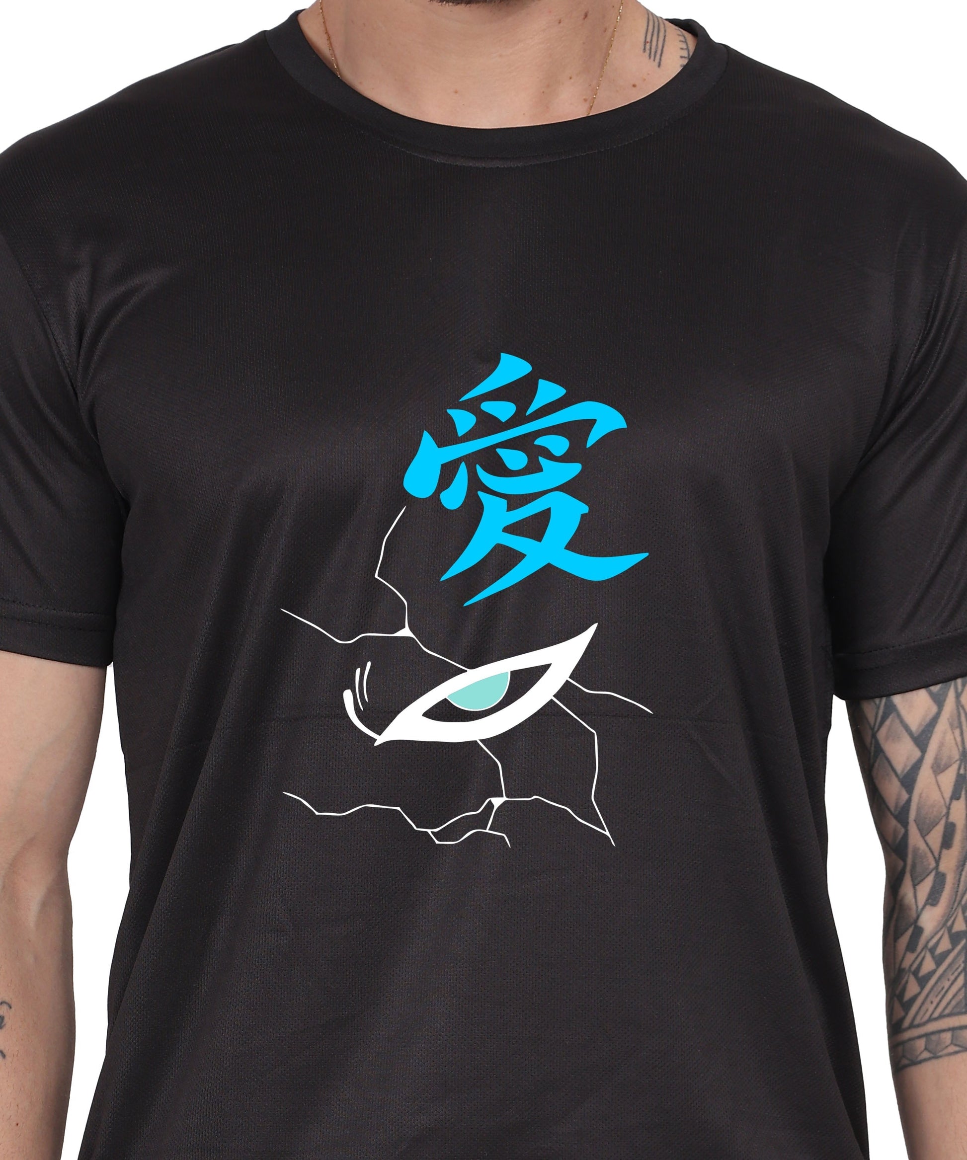 Make a bold statement with this striking black graphic t-shirt featuring a dramatic hooded figure design and impactful typography. Crafted from premium cotton fabric, this versatile piece delivers superior comfort for everyday wear. The classic crew neck design and short sleeves provide timeless appeal, while the regular fit ensures unrestricted movement. The t-shirt measures 70 cm in length and 50 cm in width, accommodating various body types and pairing effortlessly with jeans, shorts, or casual trousers. The screen-printed graphic maintains its sharp appearance, making it perfect for casual outings, street wear, or creating a distinctive fashion statement. Notable features include a comfortable ribbed neckline that retains its shape and a straight hemline for classic appeal. Care is straightforward - machine wash cold and tumble dry low. Whether you're heading to the gym, casual meetups, or running errands, this t-shirt combines comfort with a distinctive style that's sure to turn heads. The all-season design makes it a versatile addition to any wardrobe, suitable for year-round wear. The stark contrast between the black base and the striking blue and white graphic creates an eye-catching visual impact that commands attention.